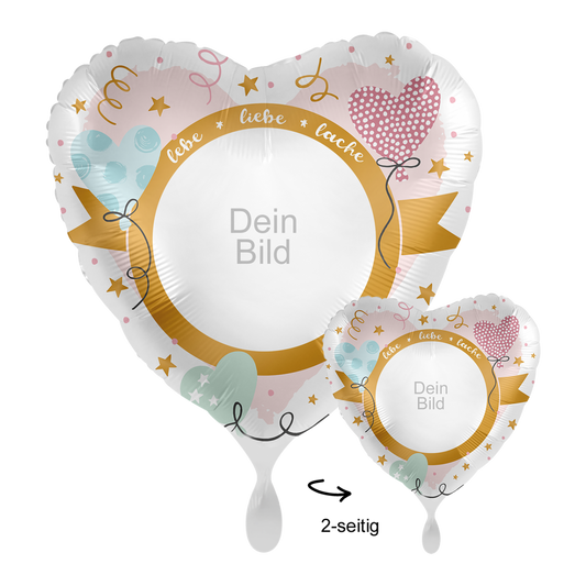 Fotoballon Ø 43cm Herzform - Lebe Liebe Lache